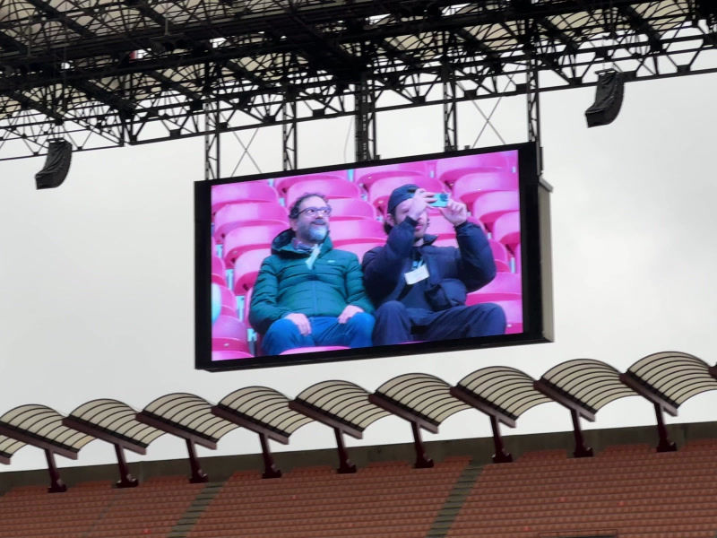 During pre-match and half-time, the Augmented Reality Fan Cam (AR Fan Cam) engages the stadium speaker and spectators by applying 3D filters and effects, which are then projected onto the San Siro mega-screens. This integration creates a 360-degree experience of entertainment, involvement and active participation in the stadium.